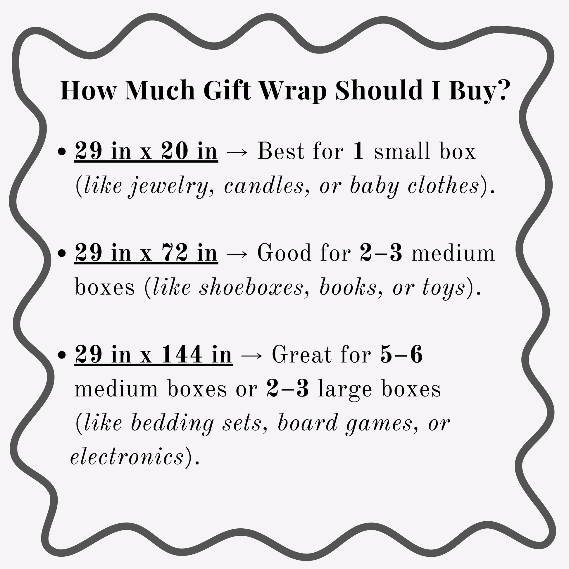 · Each package is designed to fit the size of the product and protect during shipping and delivery. The gift wrap sheets are wrapped in a plastic sleeve, packaged in a cardboard box, and then sealed with paper tape. The shipping box is recyclable.