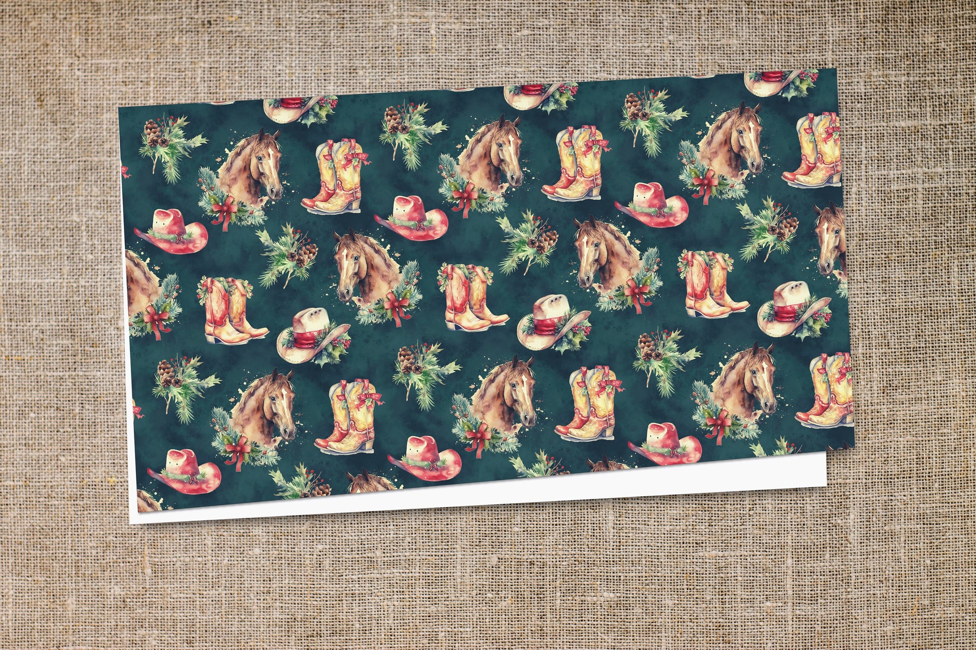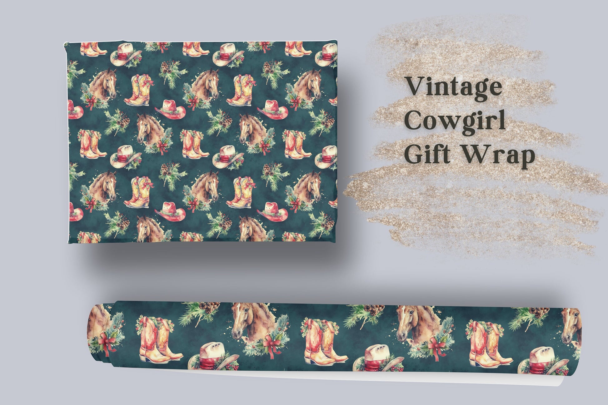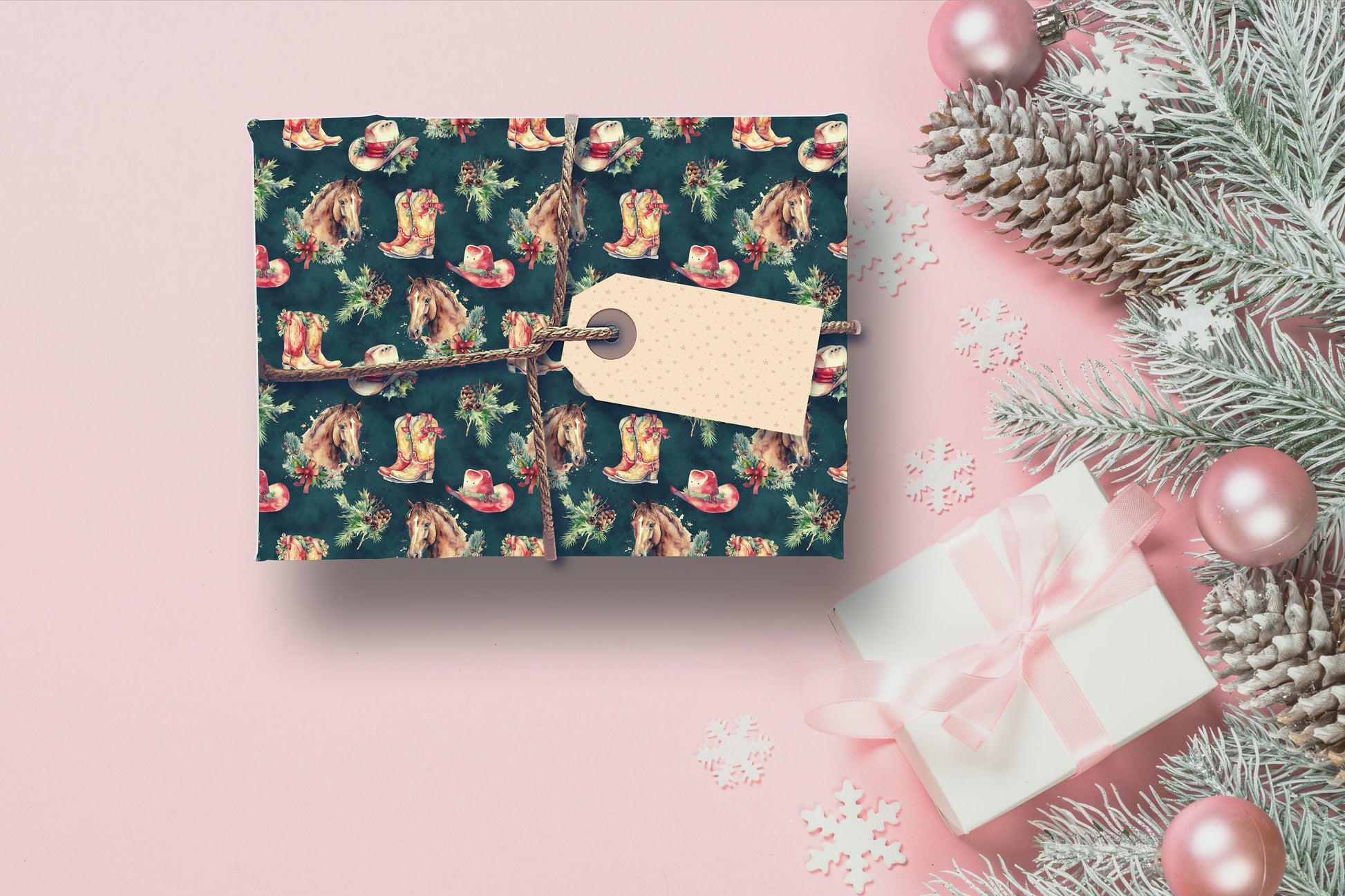 Western Christmas Wrapping Paper Cowgirl Gift Wrap Christmas Horse Gift Paper Cowgirl Country Christmas Gift Wrapping Paper Green Gift Wrap - Gift Wrapping Paper, available in both glossy Satin and classic Matte finishes.